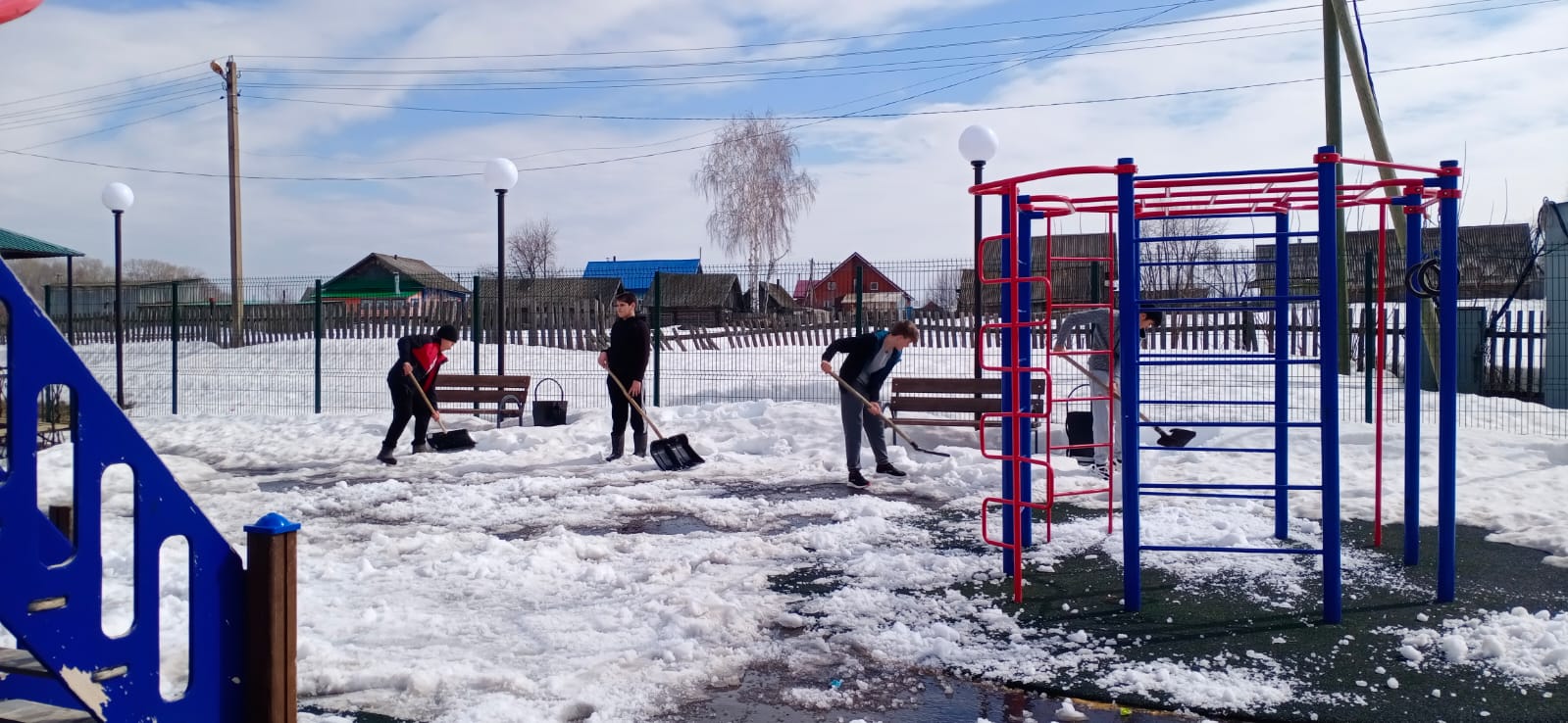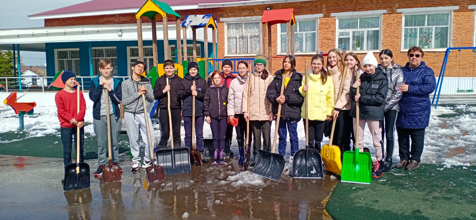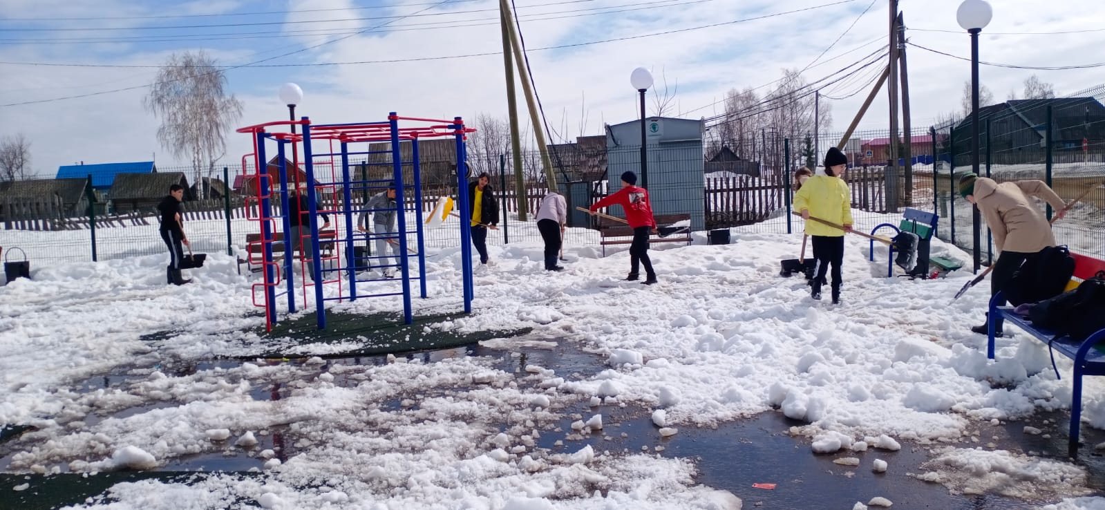 Расчищение детской площадки от снега сосьмиклассниками