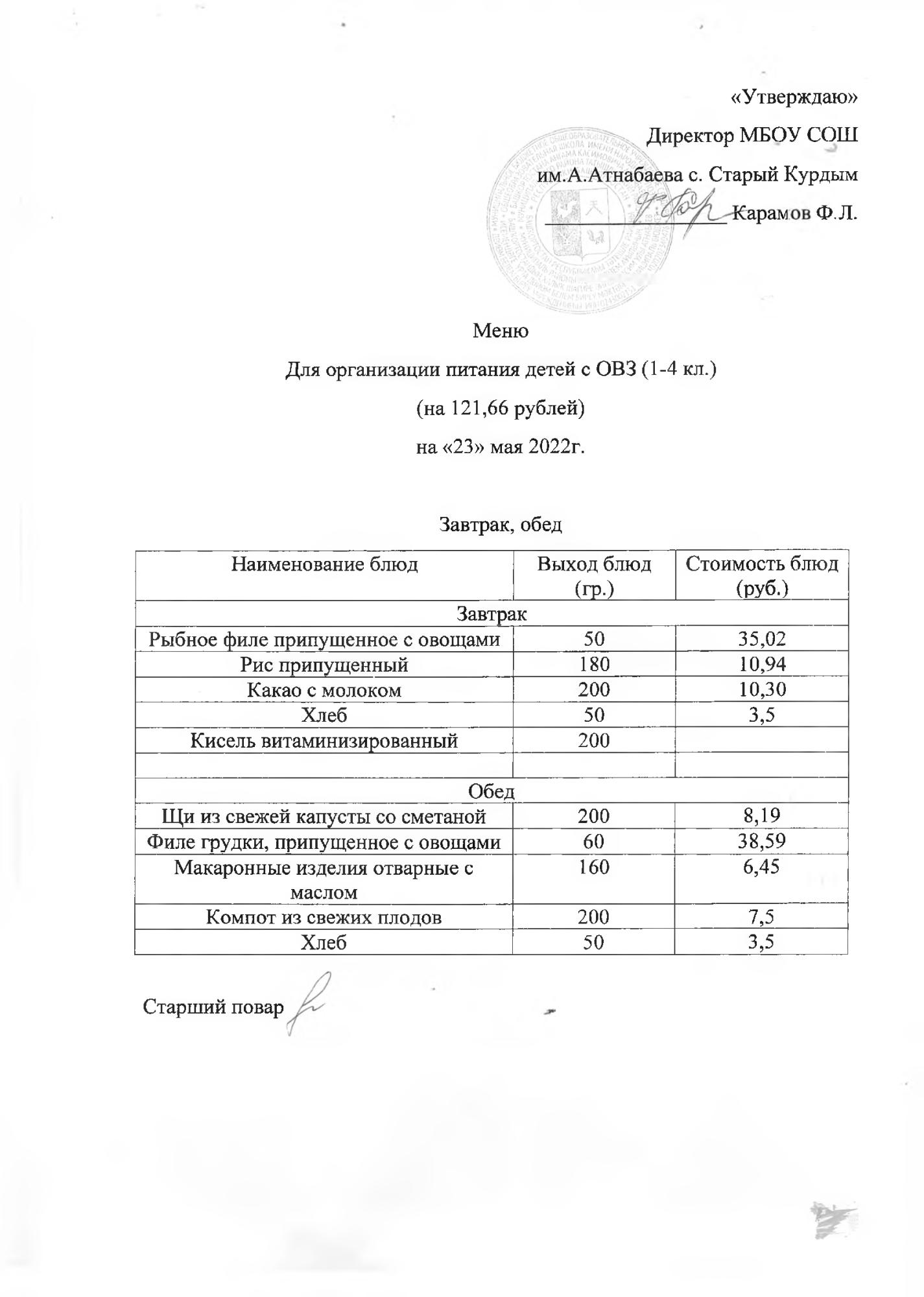Примерное меню