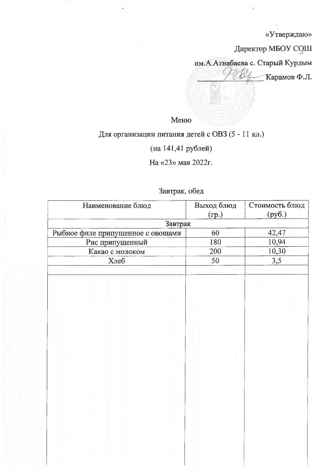 Стоимость школьного питания