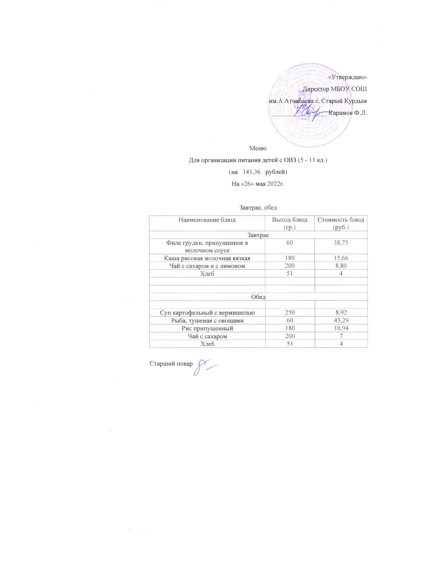 Стоимость школьного питания