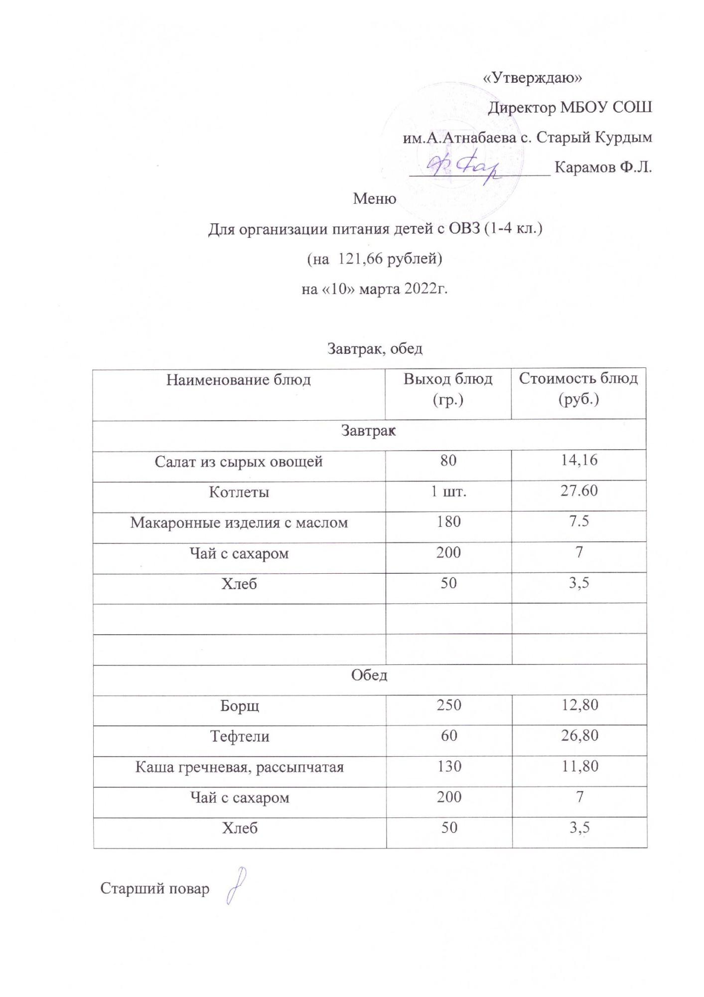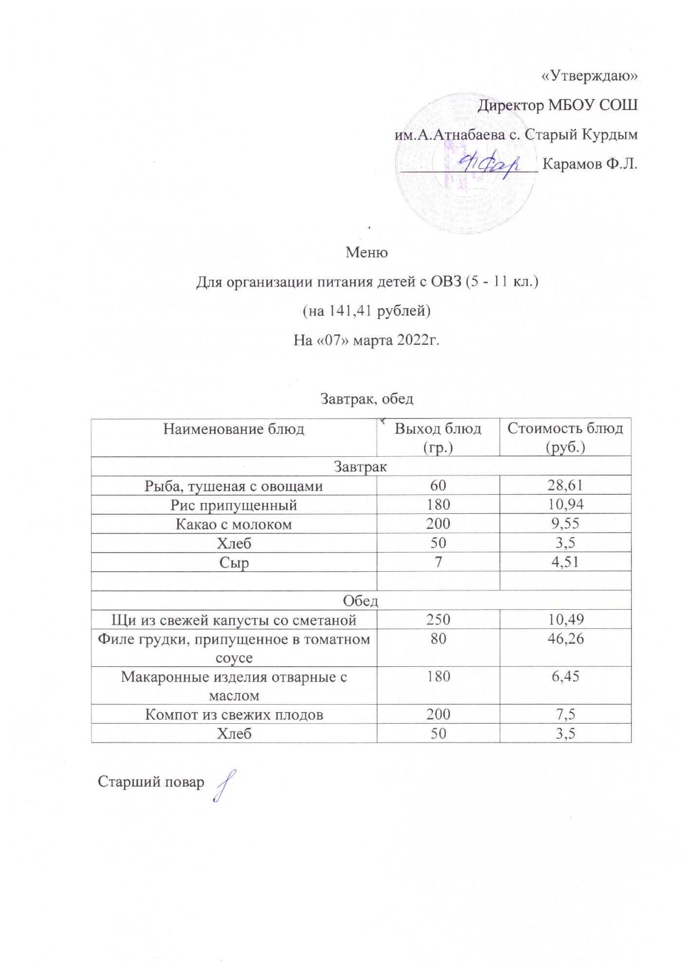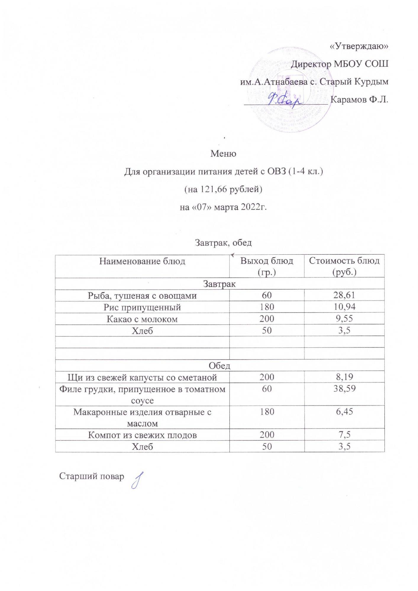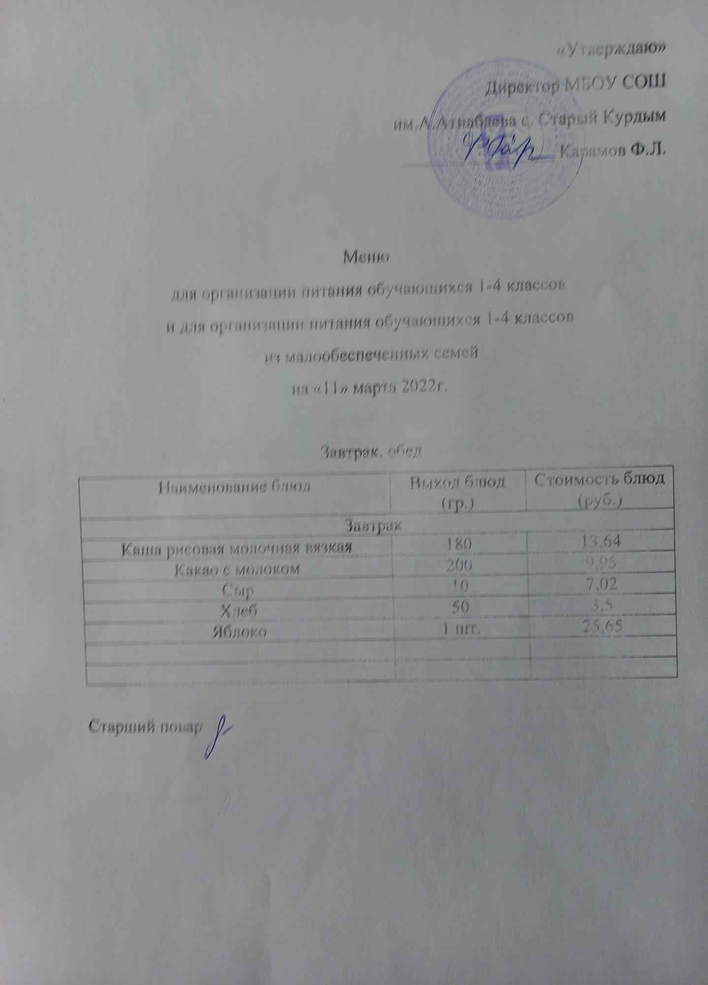 Примерное меню