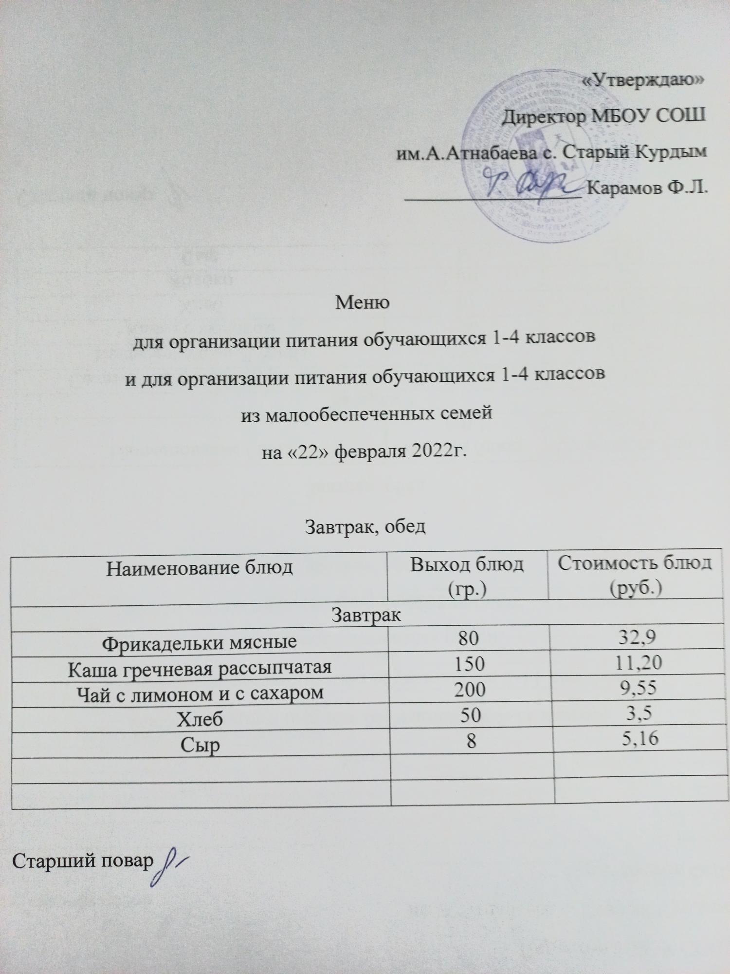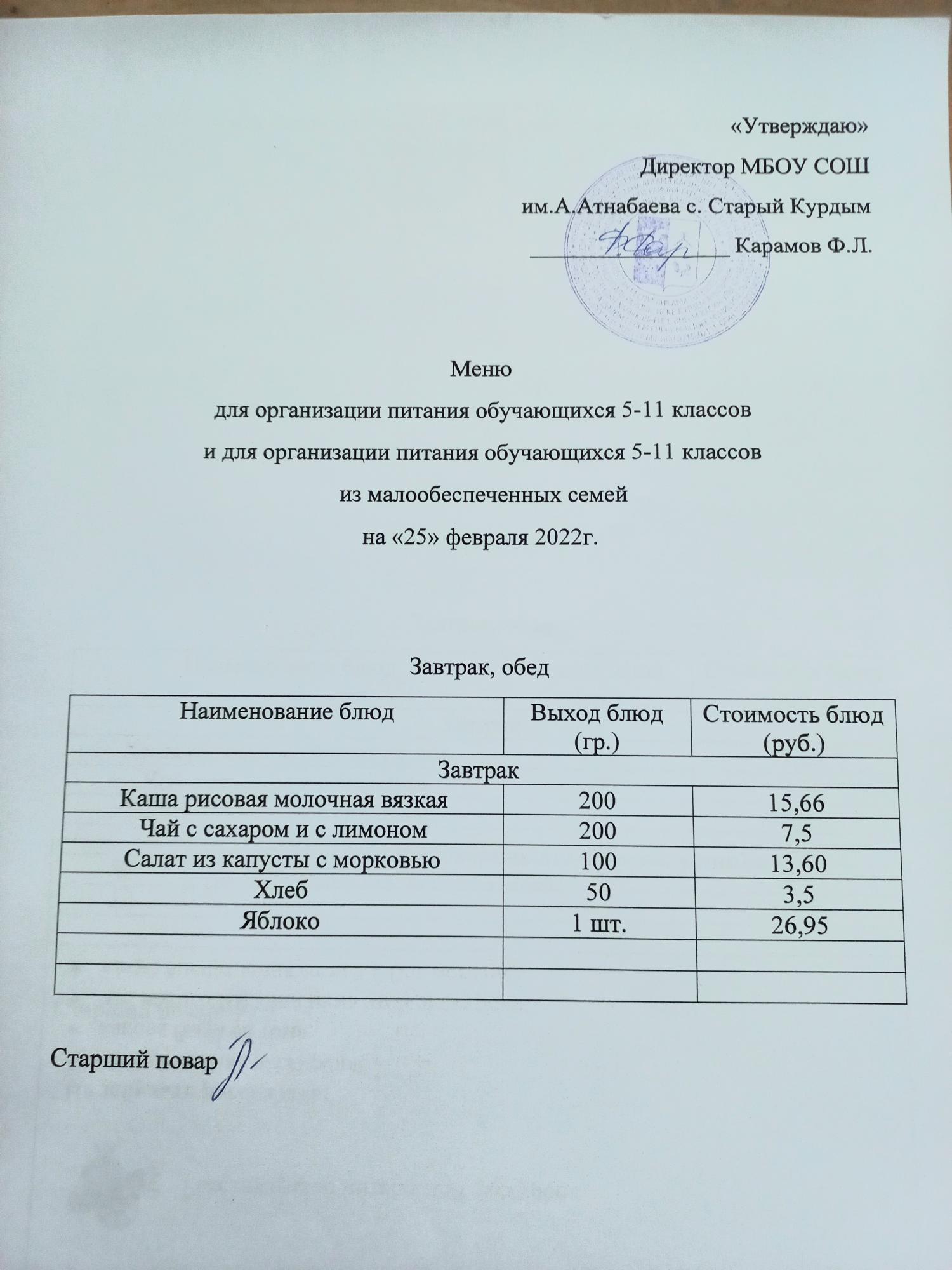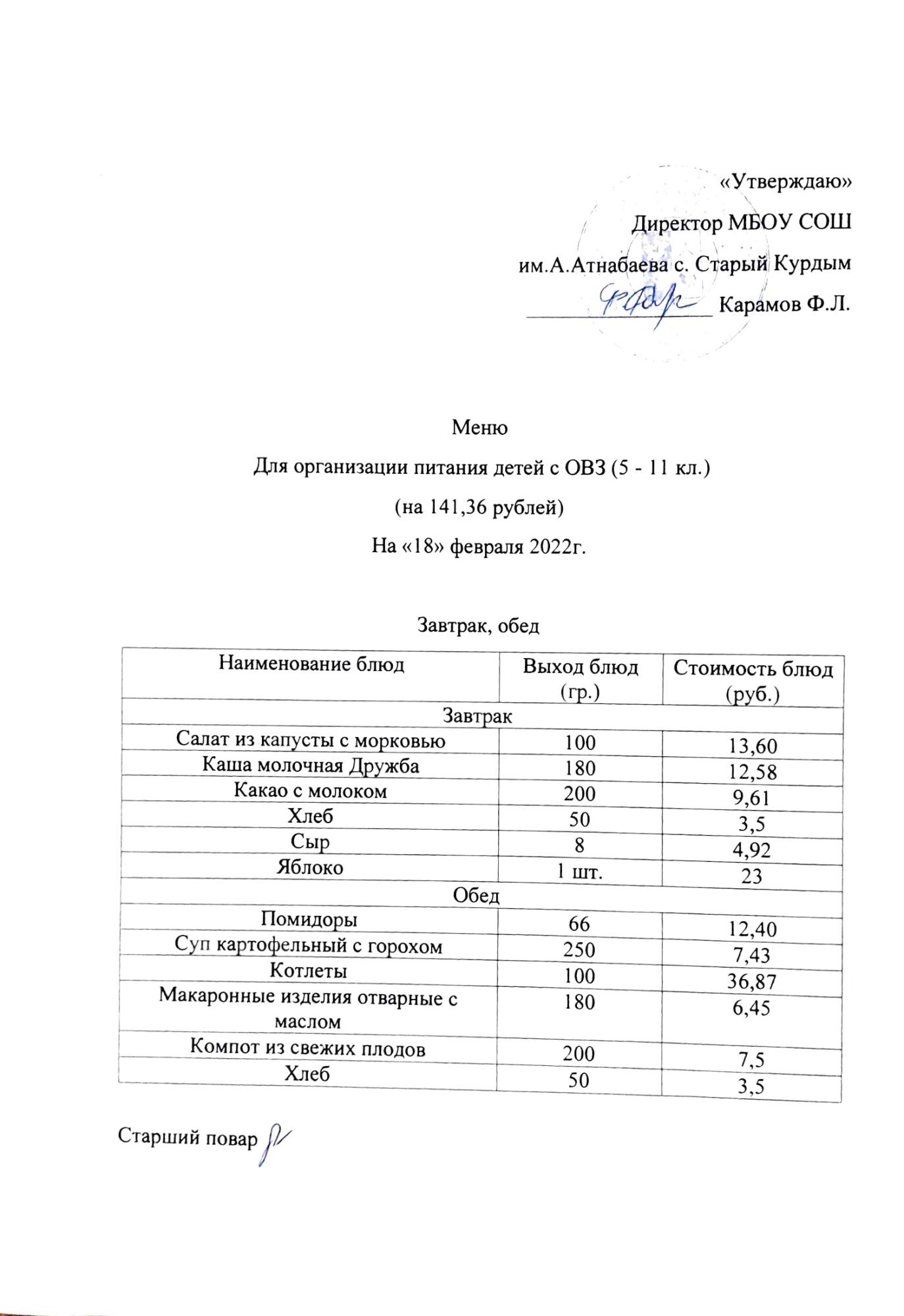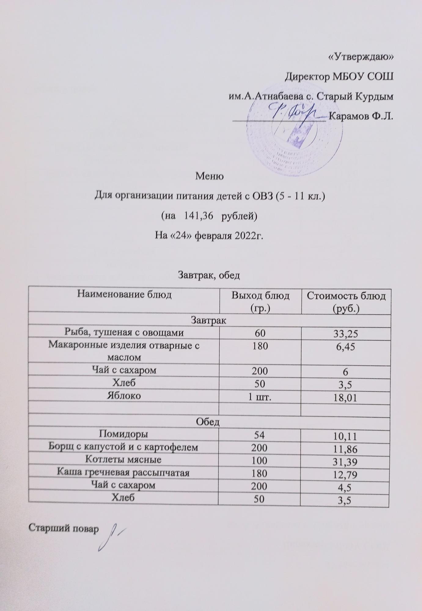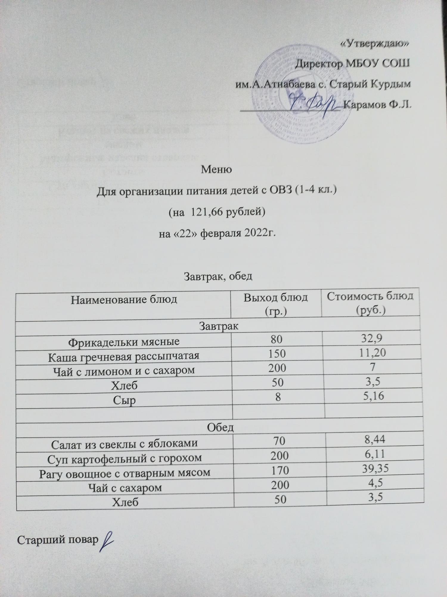 Стоимость школьного питания