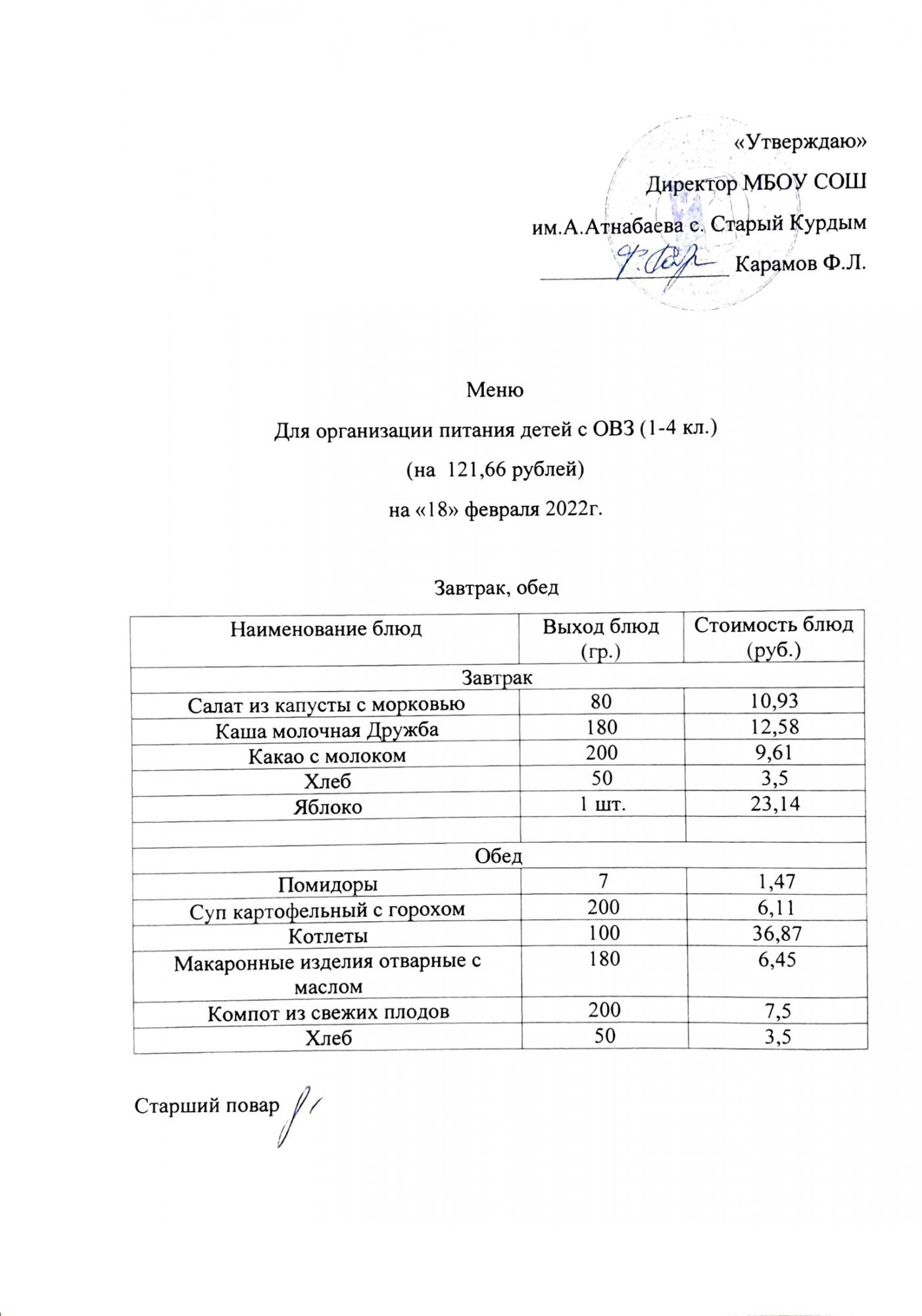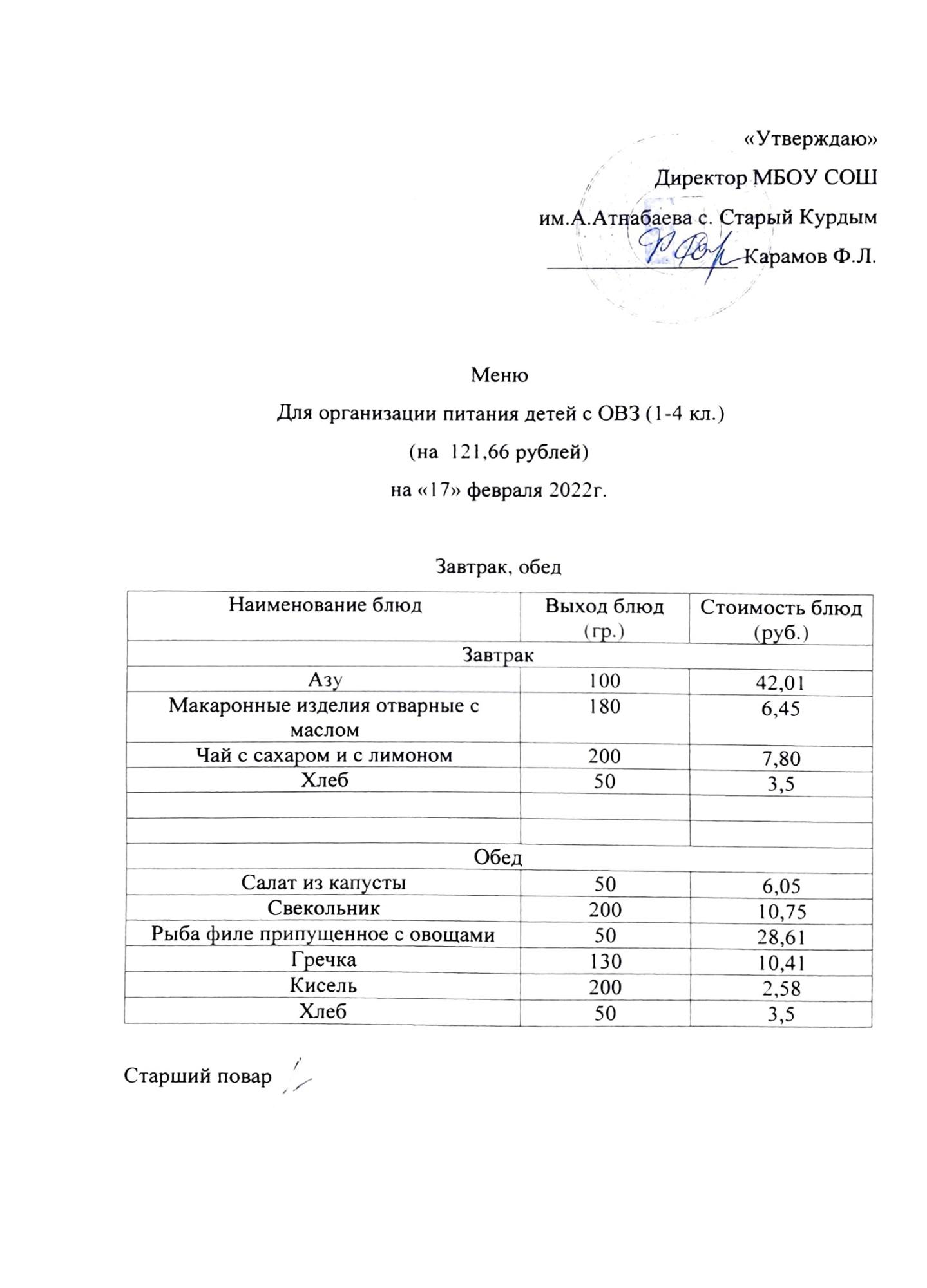Примерное меню