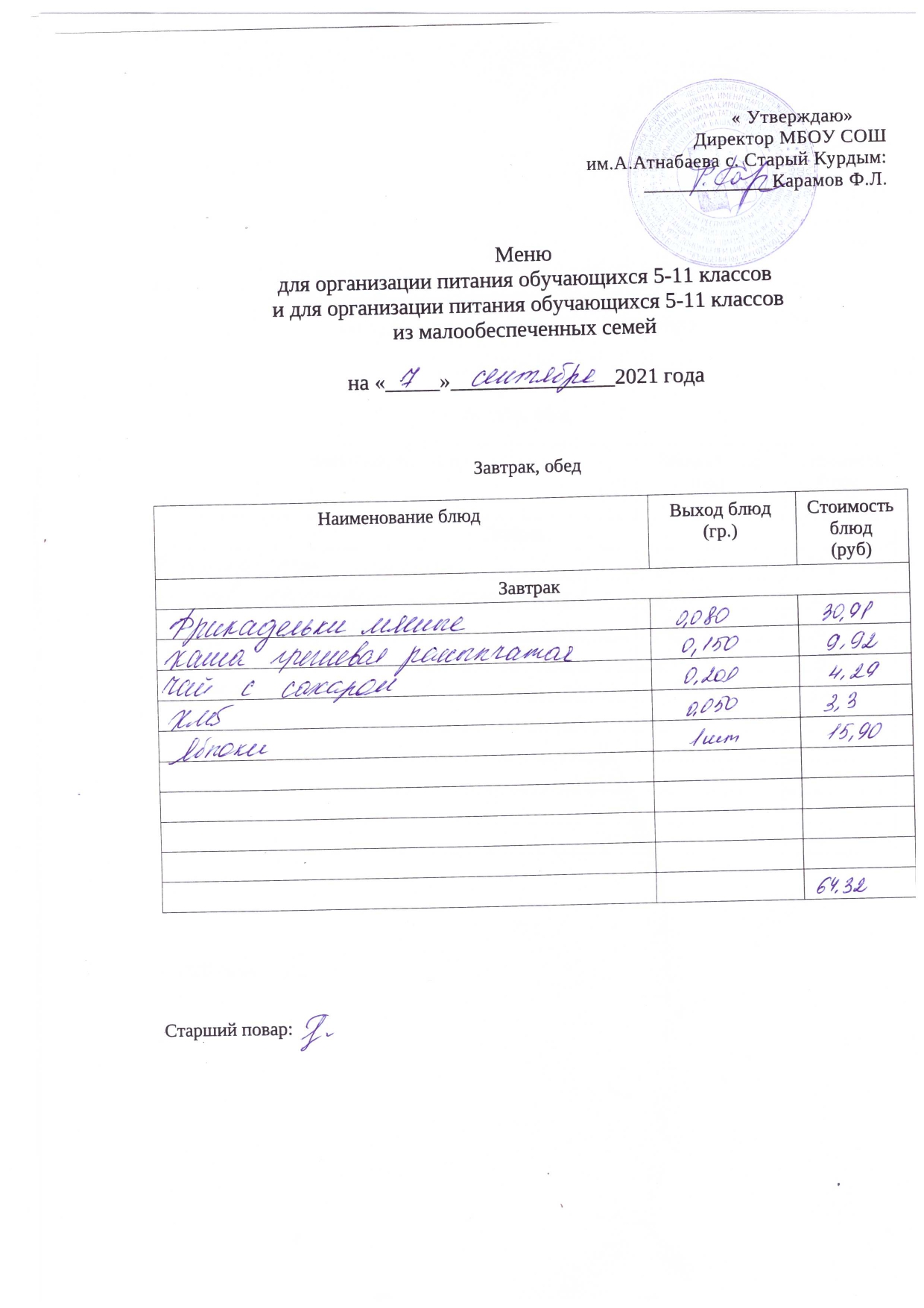 Примерное меню