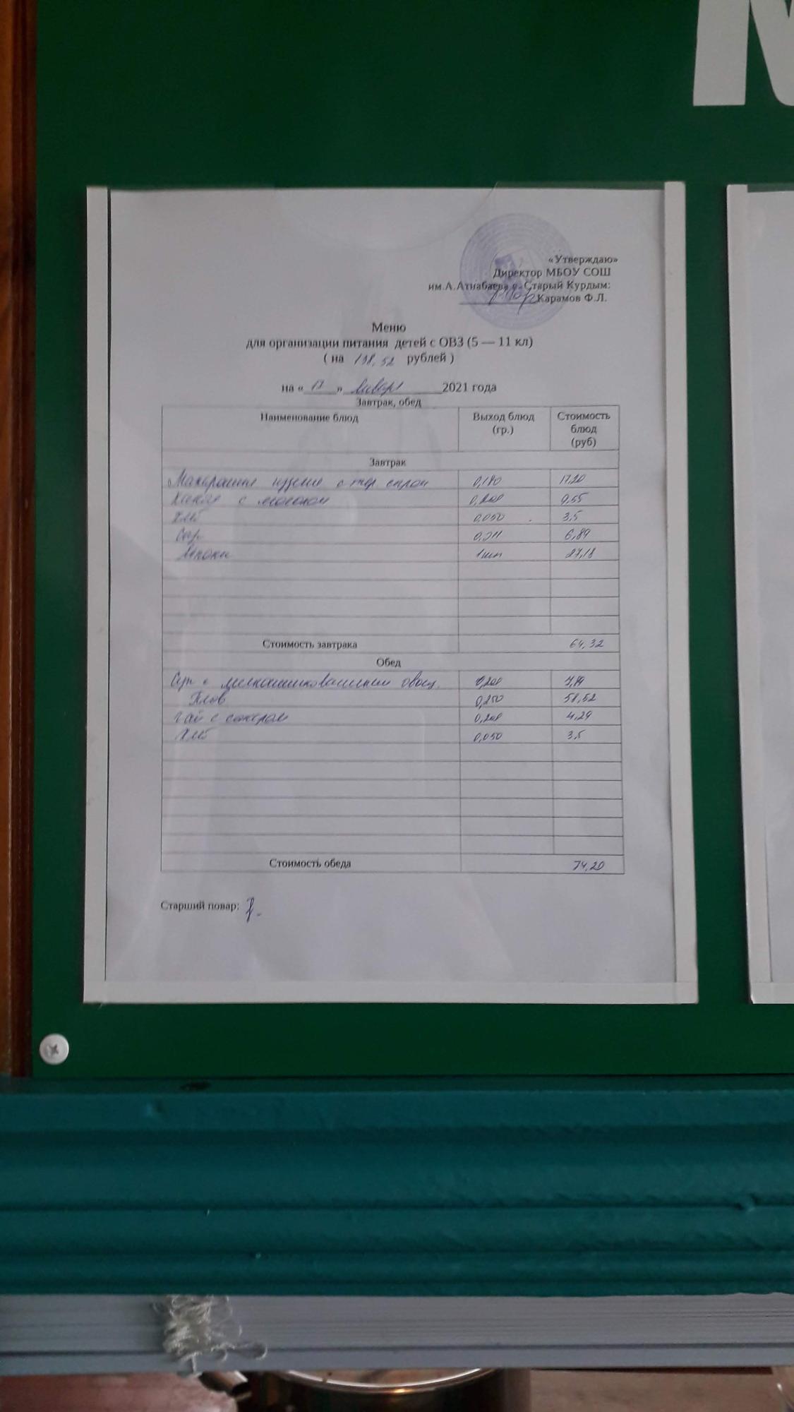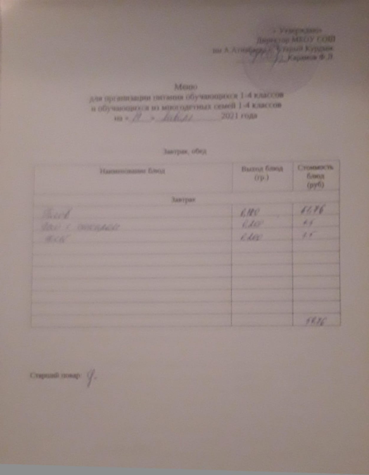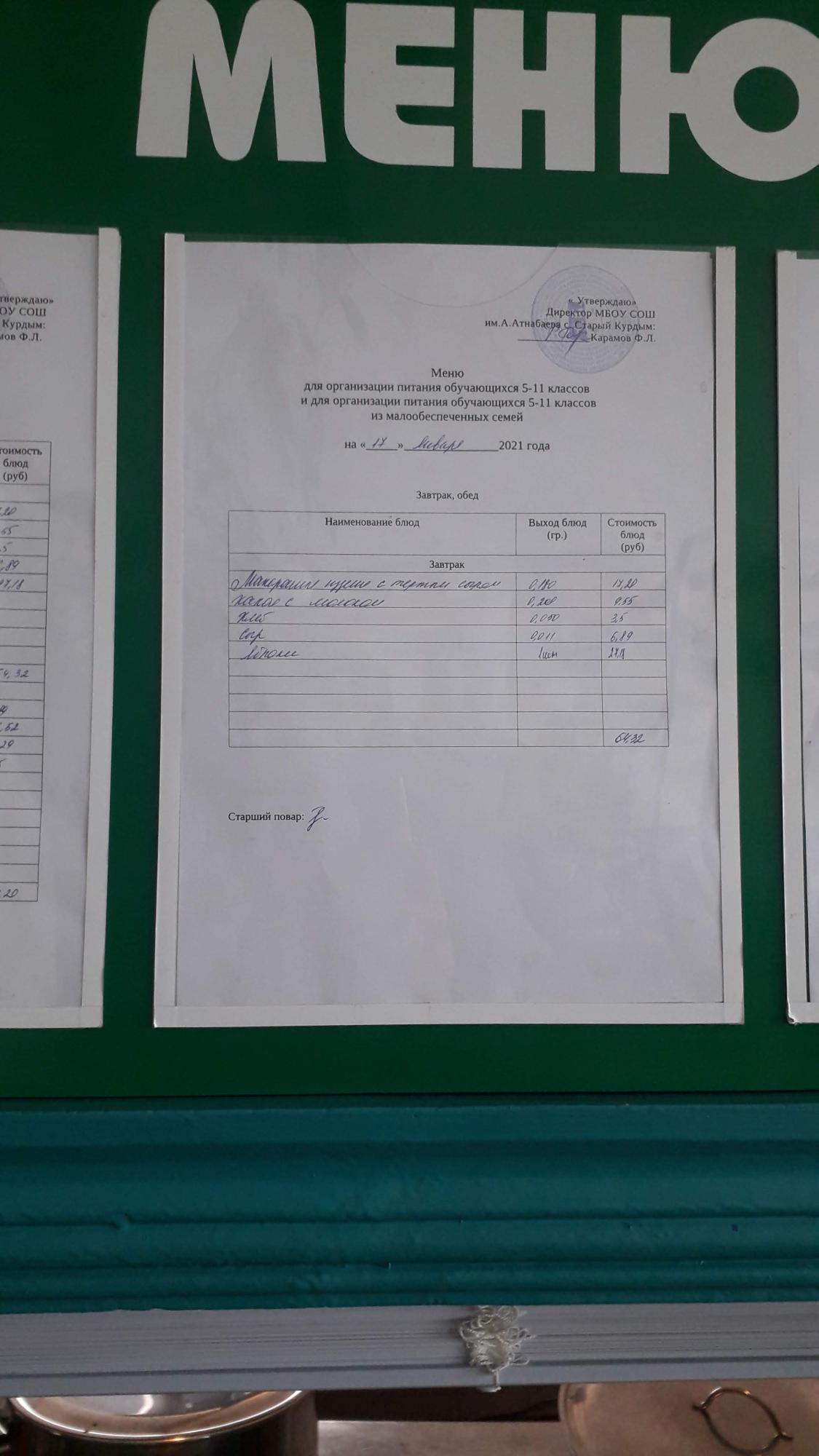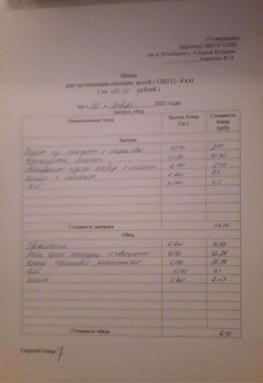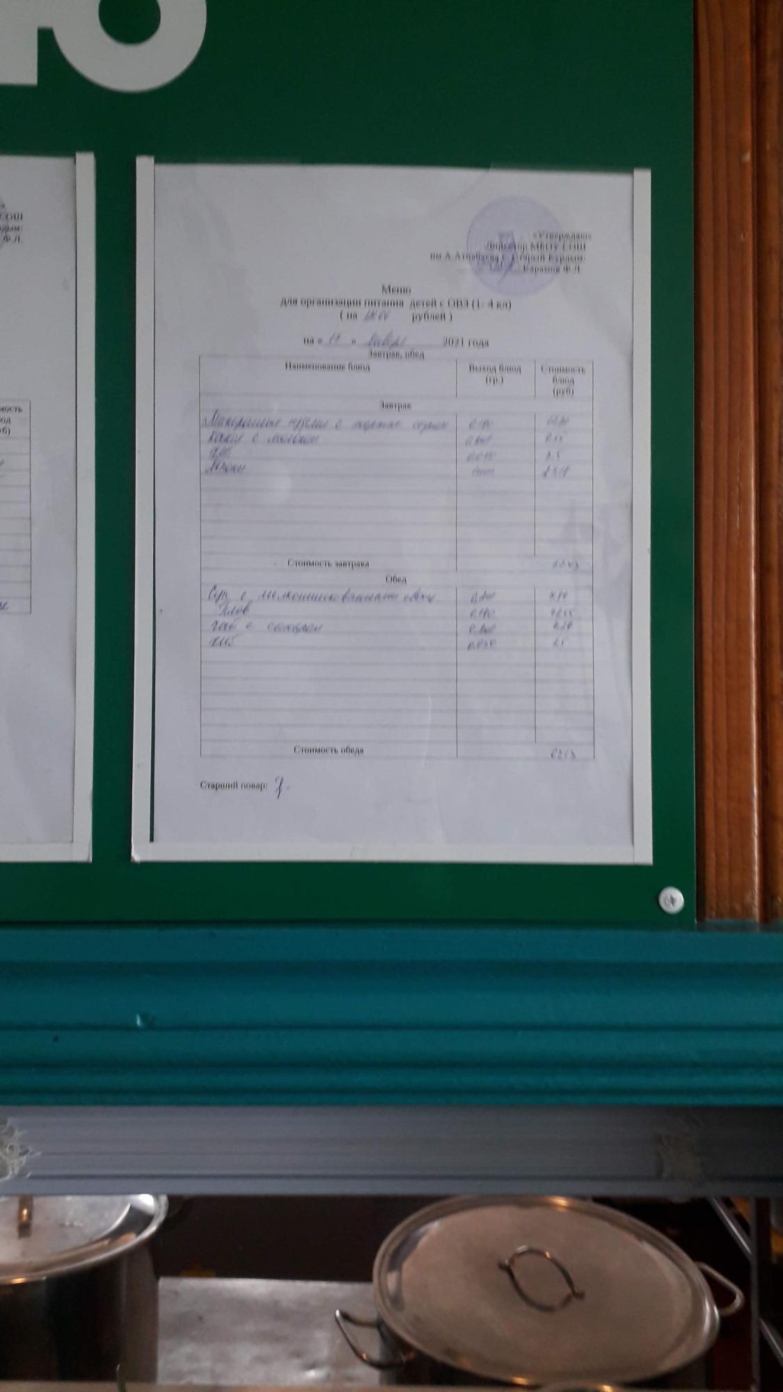 Стоимость школьного питания