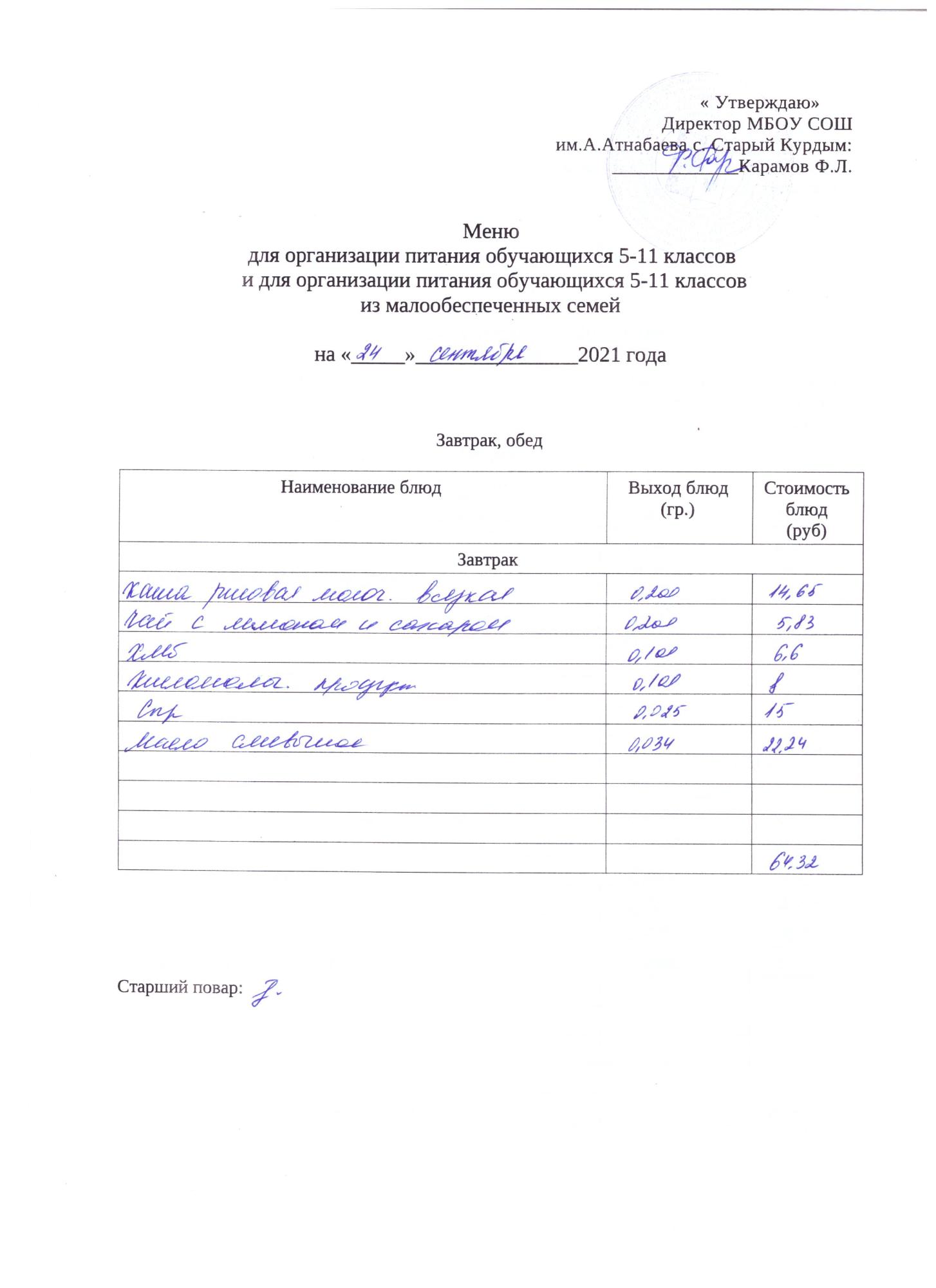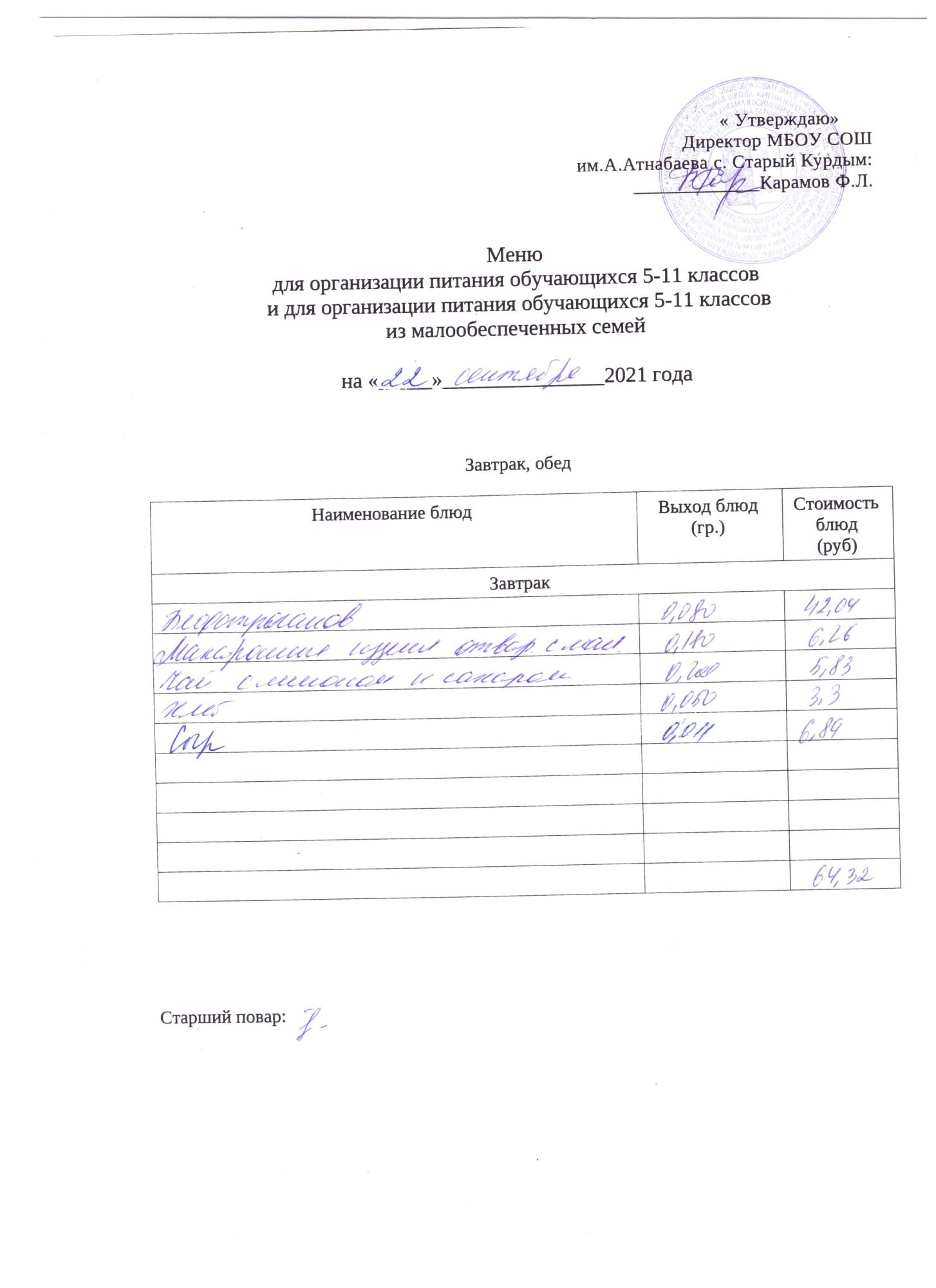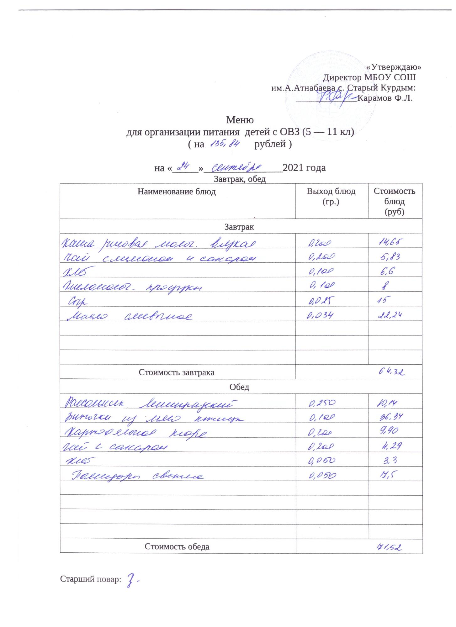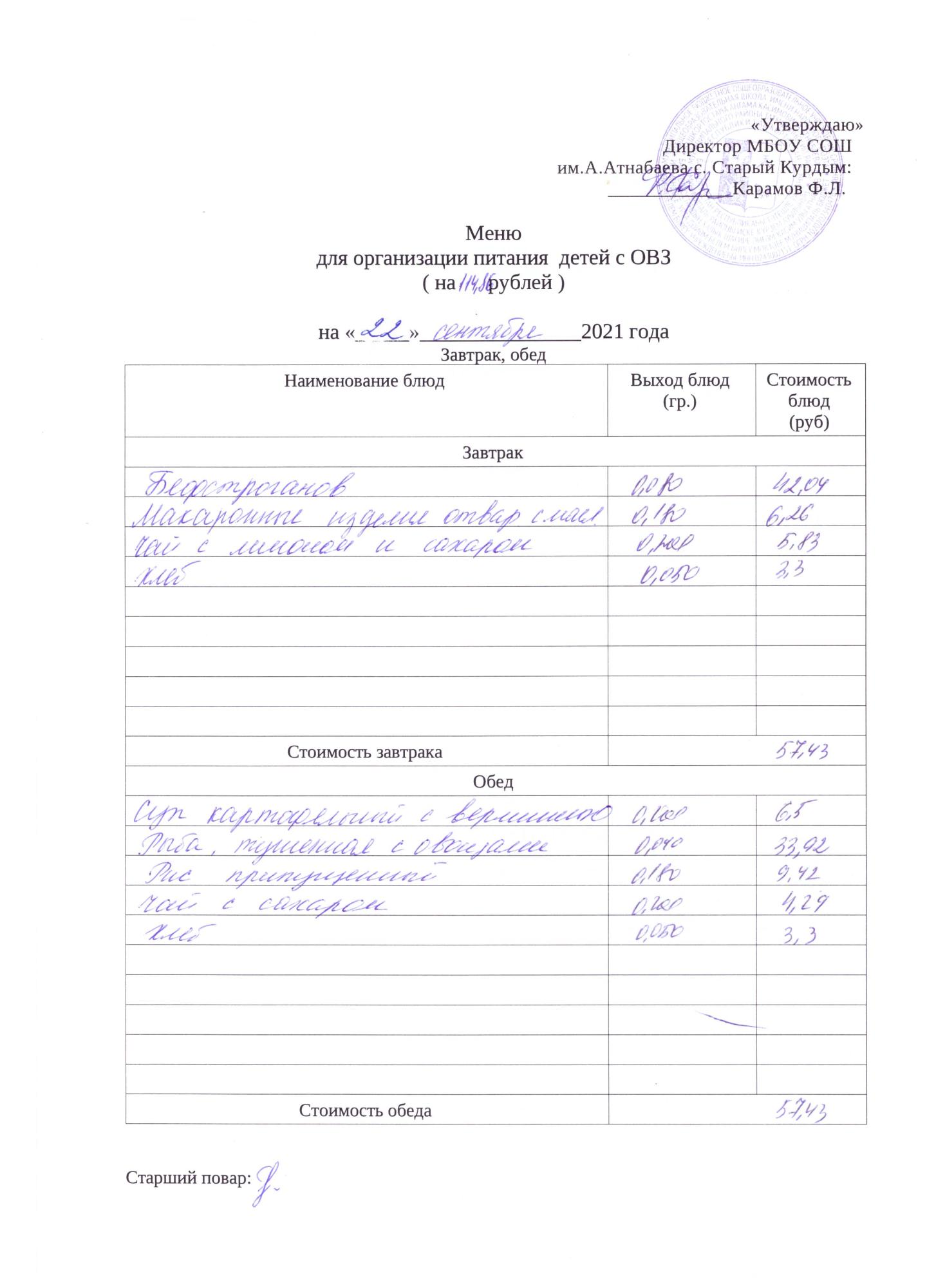 Стоимость школьного питания