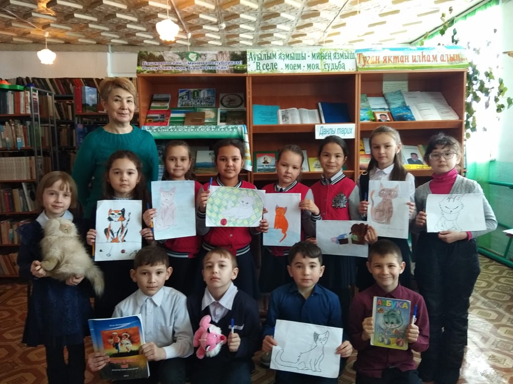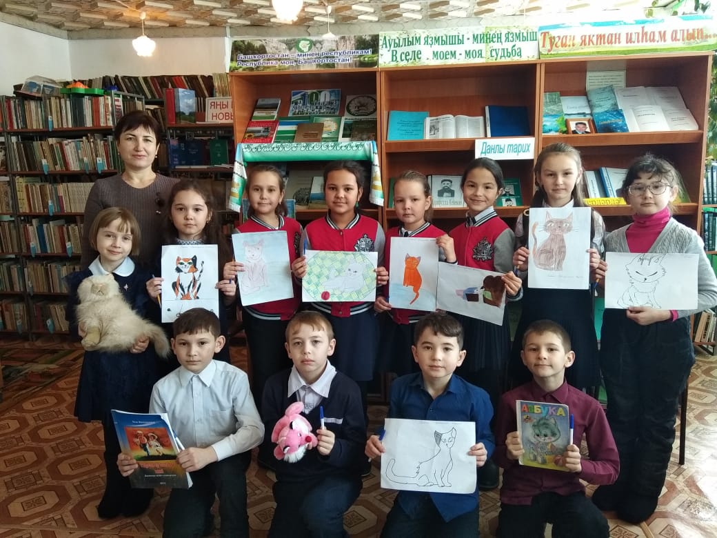 По приглашению библиотекаря Карамовой Э.Ф. 3а класс посетил сельскую библиотеку,где им рассказали ,что 1 марта отмечается День кошек.Дети узнали почти все о кошках,изобразили своих любимцев на бумаге.Было интересно!