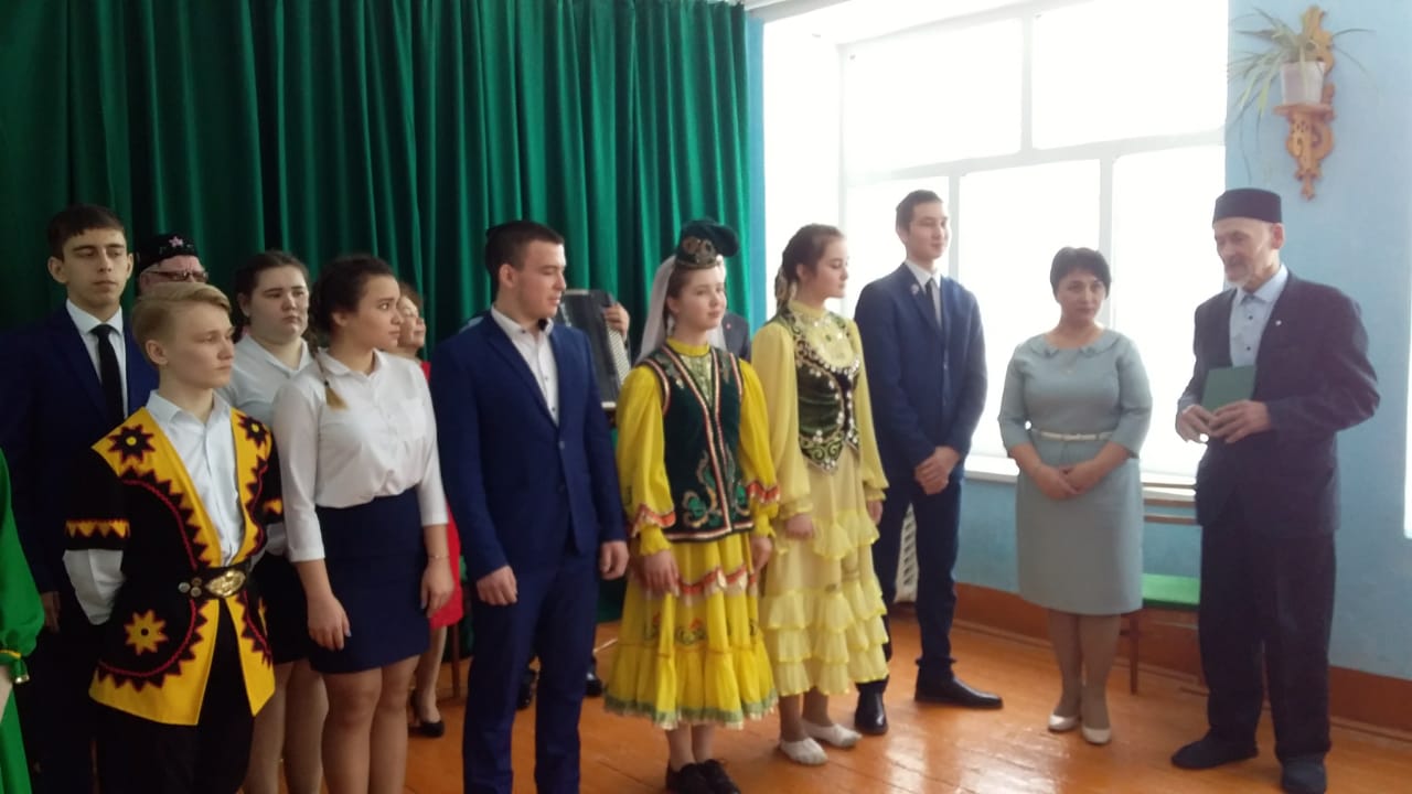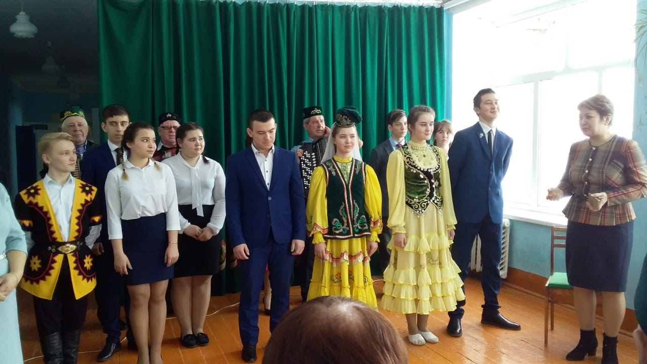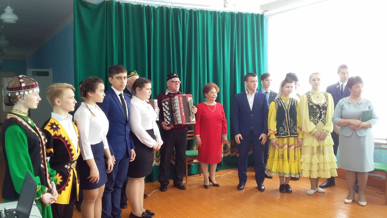 Сегодня в нашу школу приехала делегация из гимназии с.Бураево: учащиеся 10 класса, классный руководитель Муллагалиева Ляйсан Ришатовна,учителя -ветераны.Они выступили с музыкально-литературной композицией по стихотворениям А.Атнабаева.Зрителям понравилось выступление этого коллектива,их танцевальные номера девушек,игра на гармошке ветеранов.